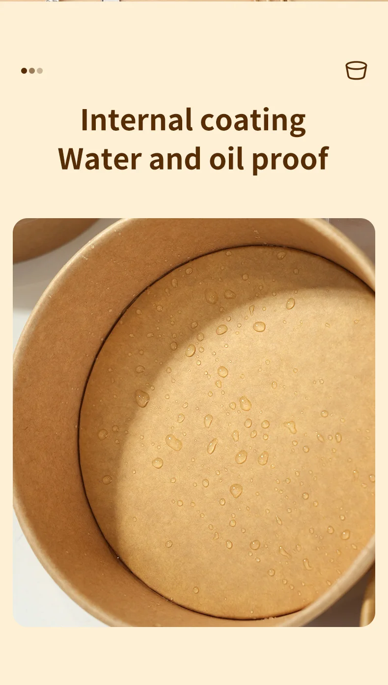 Healthy Kraft Paper Container: Safe and healthy kraft paper buckets are ideal for holding leftovers, soups, salads, pies, cakes, and sandwiches. It's also a great container for ice cream desserts and soups.