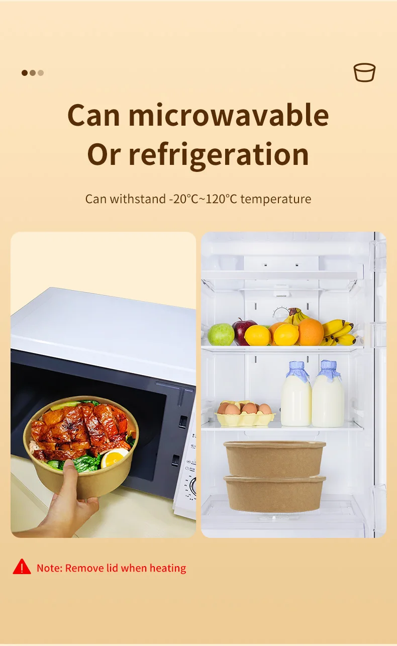 Suitable Capacity: Disposable food containers, round kraft paper cups, suitable for your daily needs, perfect for holding chicken, rice, and vegetables. Also great for pasta and salads. Ideal for barbecues, parties, and gatherings.