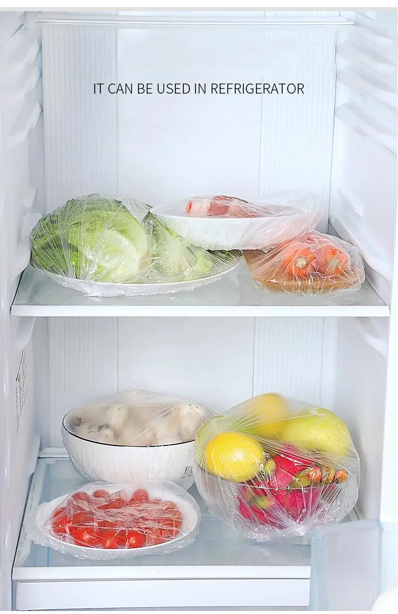 100PCS Disposable Food Cover Elastic Plastic Covers For Dishe Wrap Clings Film Dish Plate Fresh Keeping Bag Kitchen Refrigerator