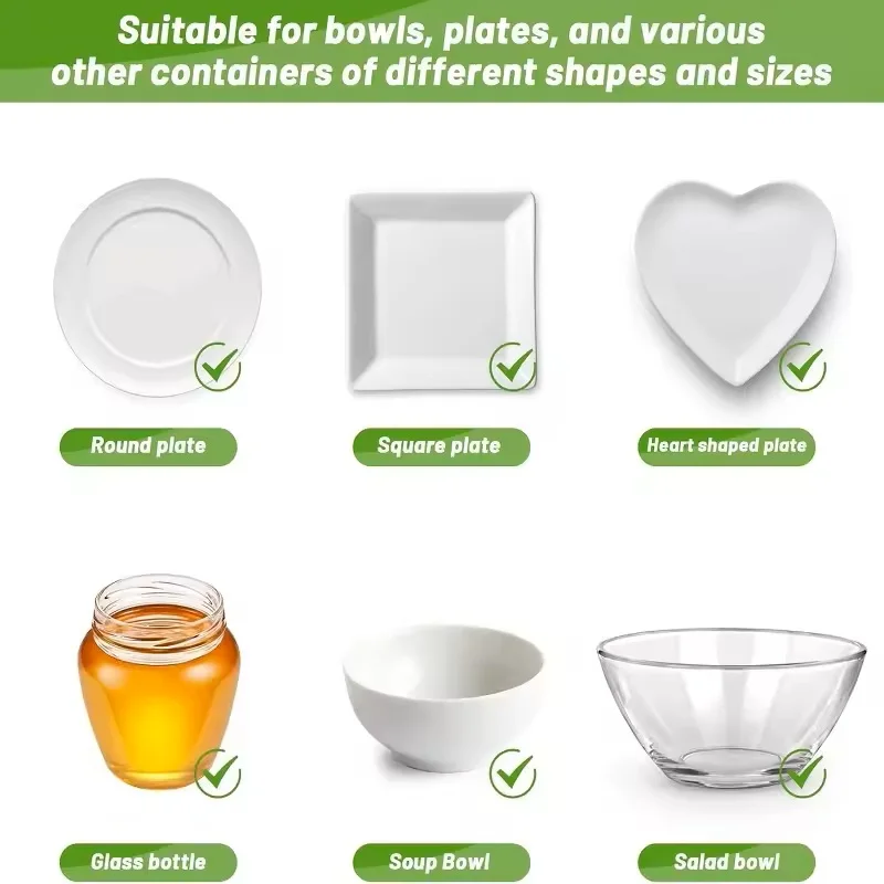 *4. Flexible design, it can be adjusted to fit various shapes and sizes(square, rectangular, round), cups, plates, or other food containers.