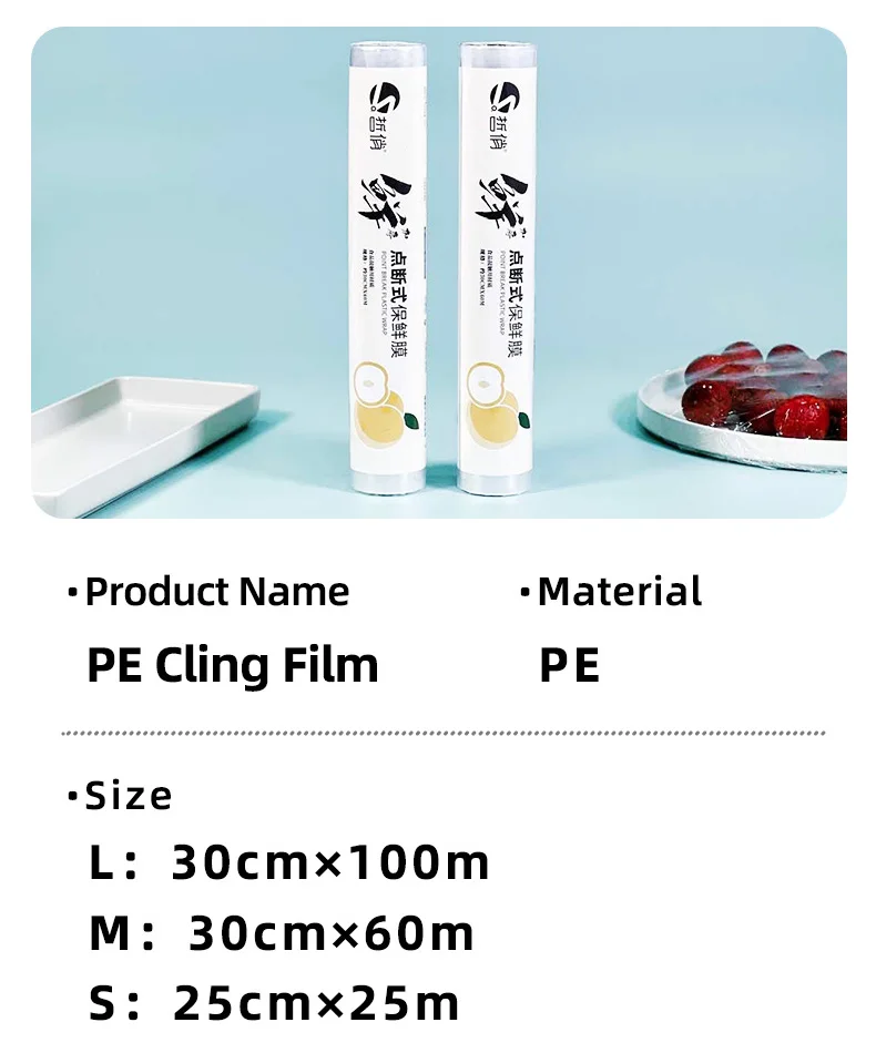 Disposable PE Cling Film With Perforated Cutting Line Extra Thick Strong Clingy Plastic Food Wrap For Refrigerator Fresh Keeping