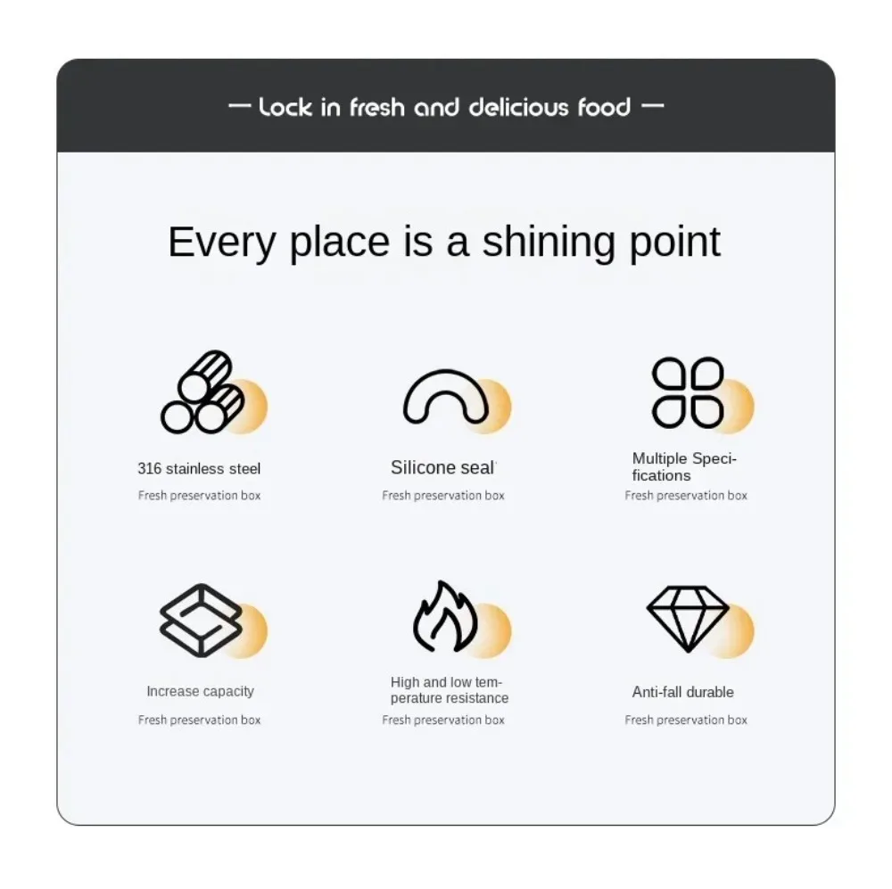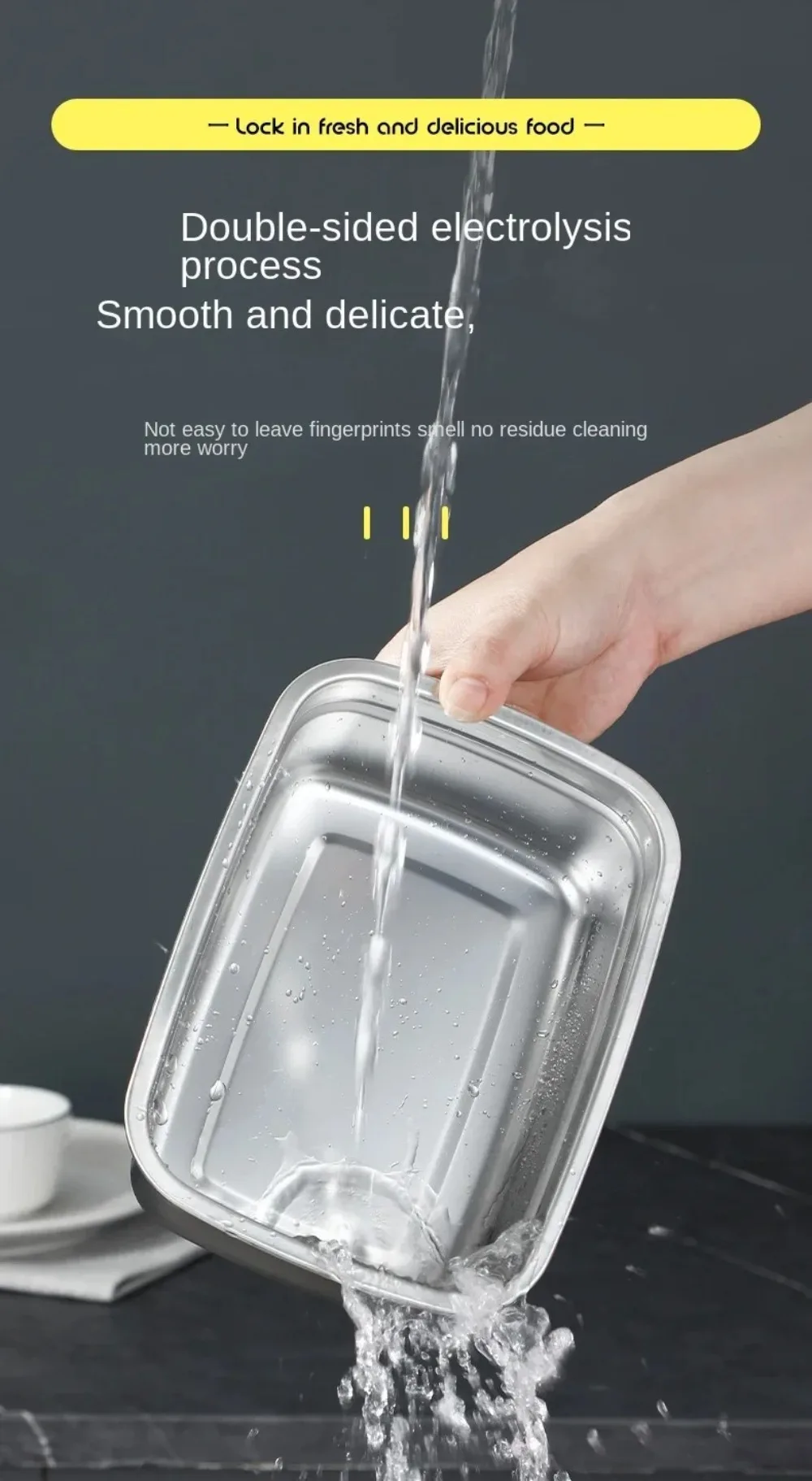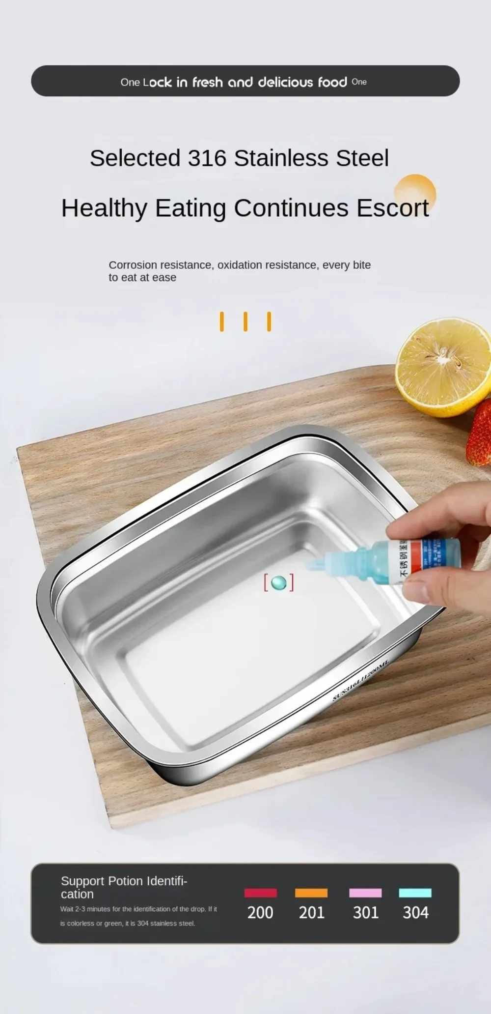 Stainless Steel Camping Lunch Box Sealed Leak-proof Bento Box Microwave Suitable Large Capacity Refrigerator Freezer Storage Box